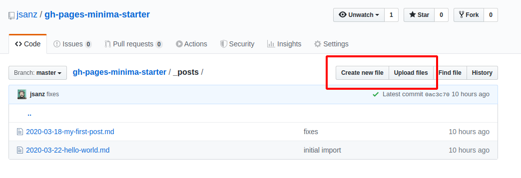 If you are using Github interface, you can use the top right buttons to create new files or upload them.